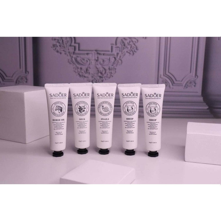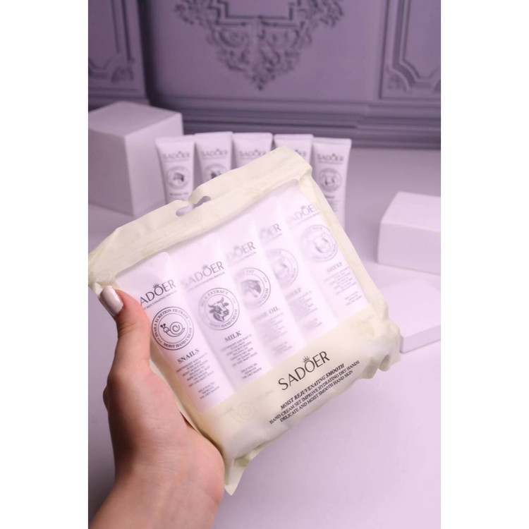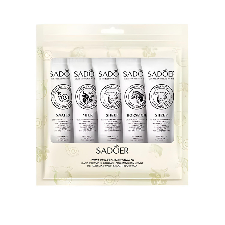 پک پنج عددی کرم دست سادور کد SD90640 در 4 عصاره و رایحه های خوشبو ( شیر گاو ، 2× گوسفند ، روغن اسب و حلزون ) می باشد این کرم دست دارای بافت سبک و مغذی است.